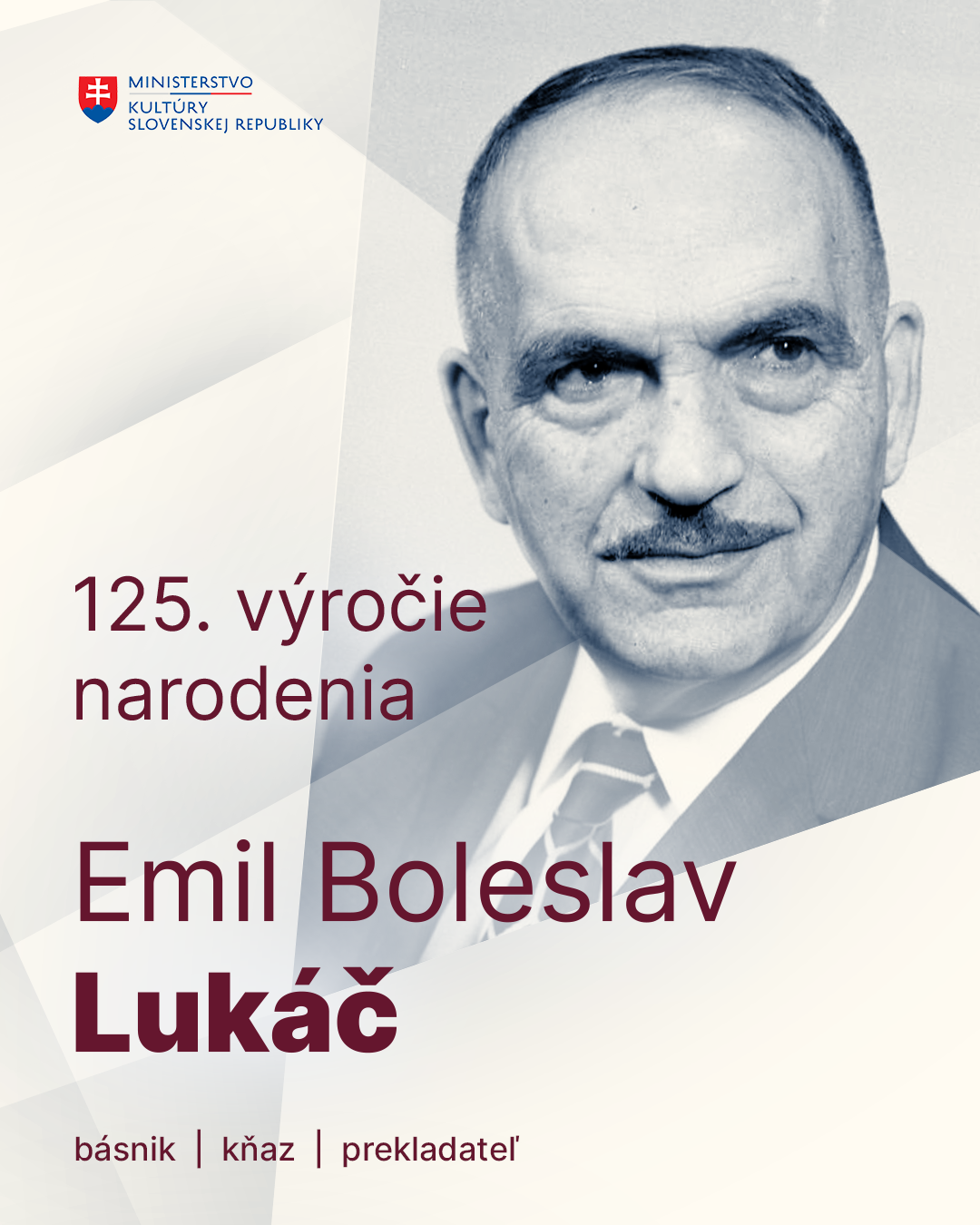 Ministerstvo kultúry Slovenskej republiky si 1. novembra 2025 pripomína 125 rokov od narodenia jedného z najvýraznejších predstaviteľov slovenskej medzivojnovej poézie, evanjelického kňaza, prekladateľa a publicistu Emila Boleslava Lukáča (1900 – 1979). Emil...