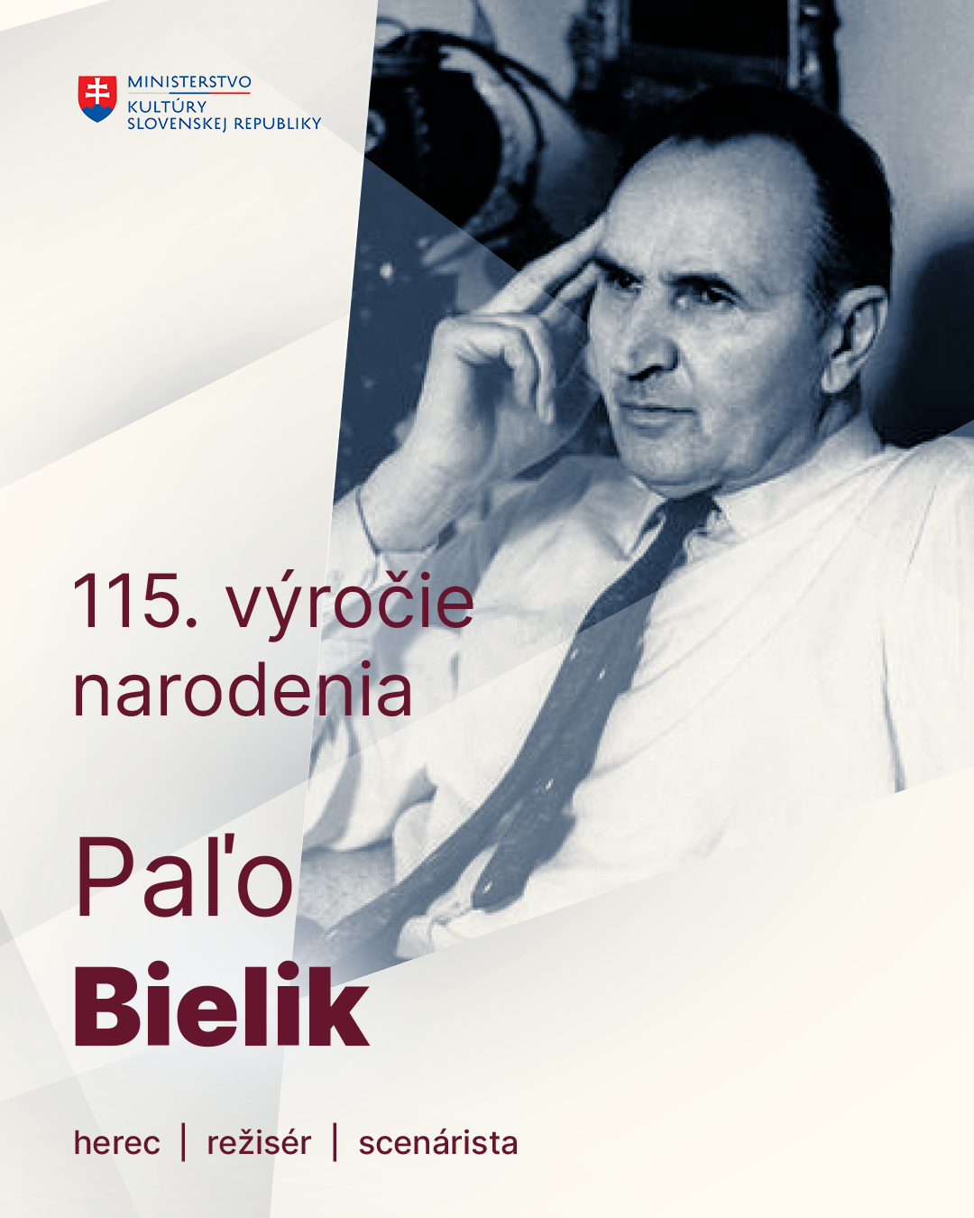 Ministerstvo kultúry Slovenskej republiky si pripomína 115. výročie narodenia Paľa Bielika (*11. december 1910, Senica – +23. apríl 1983, Bratislava), herca, režiséra a scenáristu, ktorý sa stal jednou z kľúčových postáv slovenskej...