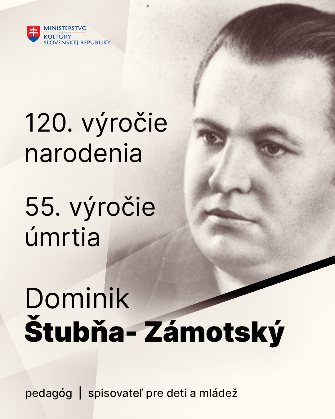 Ministerstvo kultúry Slovenskej republiky si tento víkend pripomenie významného slovenského spisovateľa a autora literatúry pre deti a mládež, Dominika Štubňu-Zámostského (*20. december 1905, Nemecká – +21. december 1970, Nové Mesto nad Váhom)....
