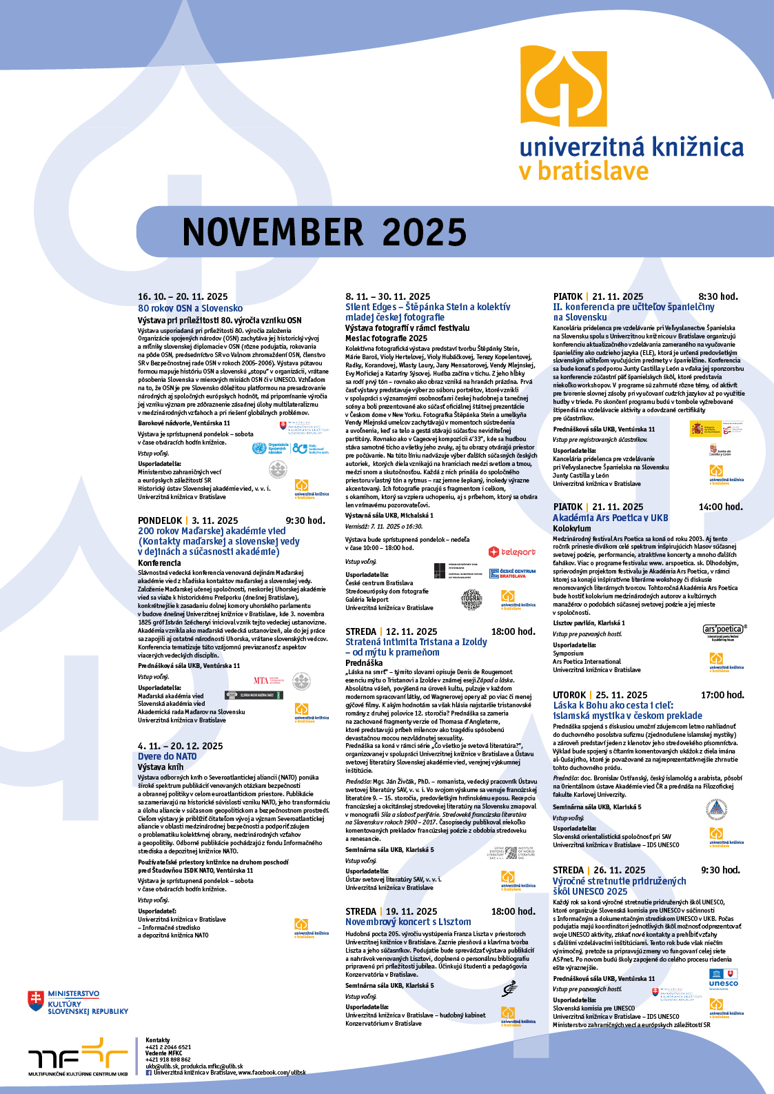Univerzitná knižnica v Bratislave vás pozýva na podujatia v mesiaci november 2025.