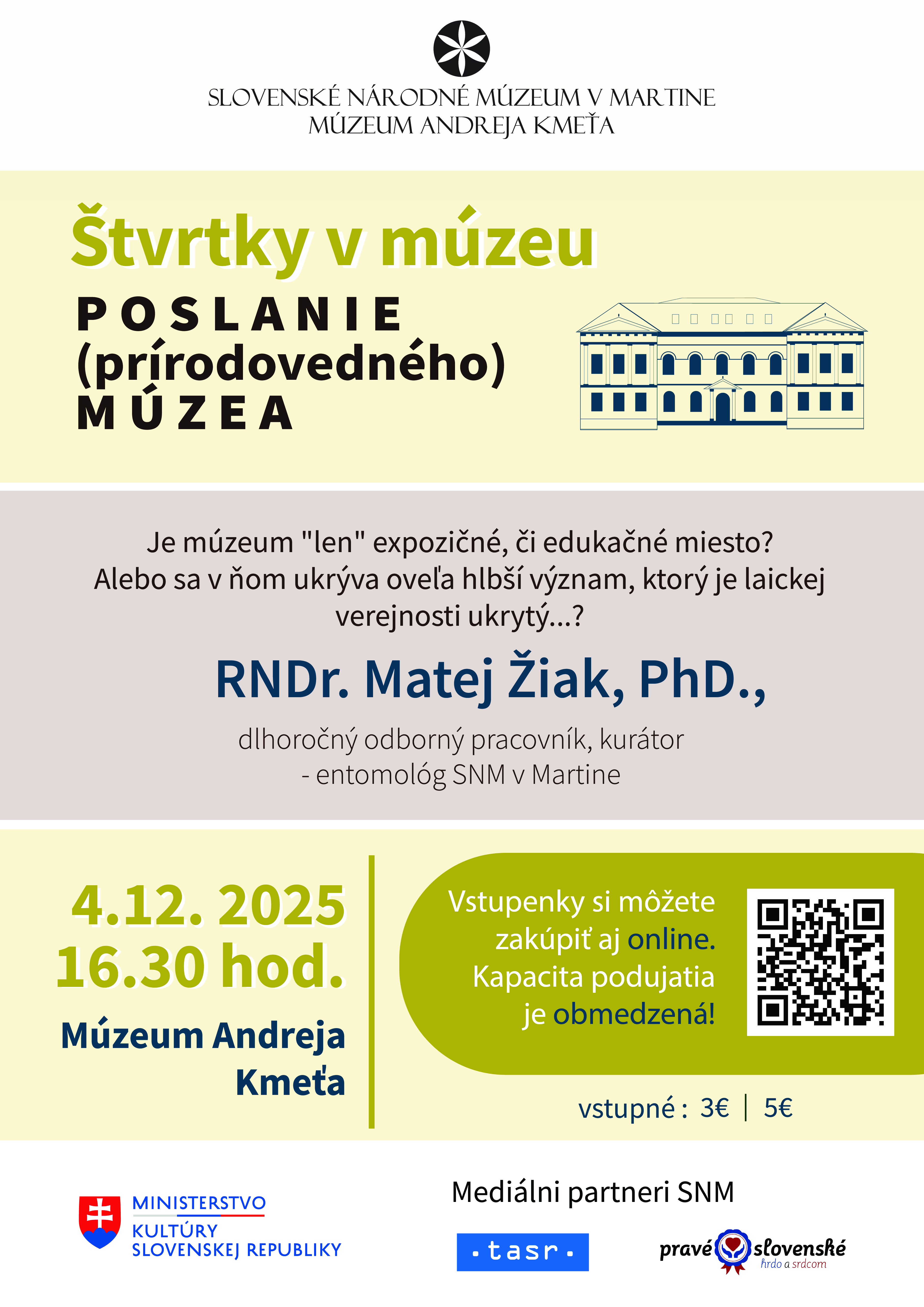 Štvrtky v múzeu: Poslanie (prírodovedného) múzea Na rovinu Vám položíme otázku: „ Patria múzea, či už prírodovedné alebo akékoľvek iné, k inštitúciám, ktoré sú pre život a fungovanie človeka esenciálne dôležité, vedela...