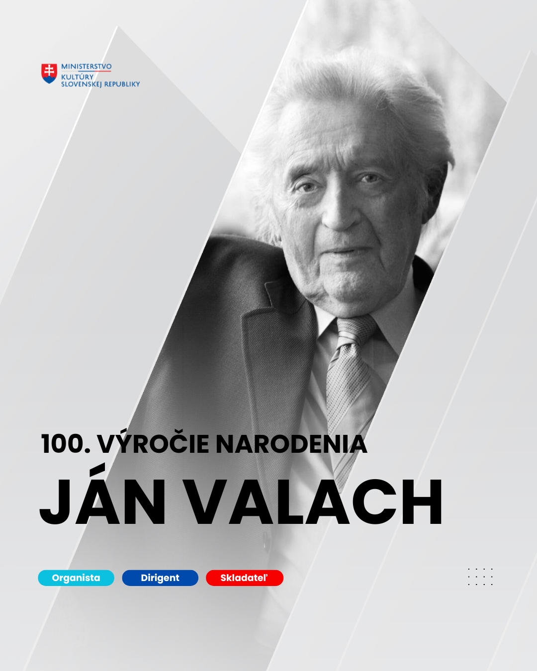 Ministerstvo kultúry Slovenskej republiky si pripomína 100 rokov od narodenia Jána Valacha (*22. septembra 1925, Hnúšťa – †20. novembra 2019, Antverpy), významného slovenského organistu, dirigenta, skladateľa a pedagóga. Po štúdiách na Štátnom...