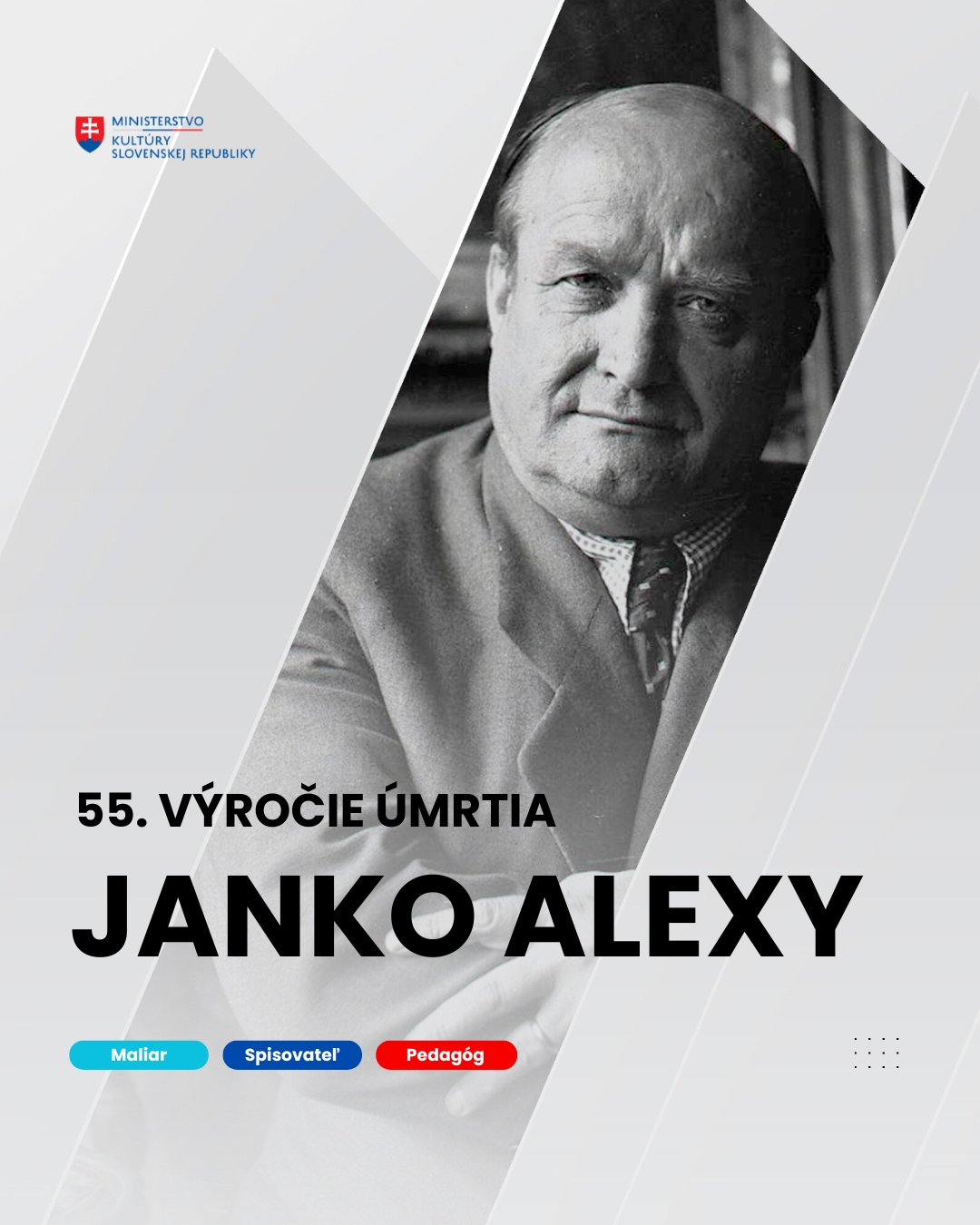 Ministerstvo kultúry Slovenskej republiky si pripomína 55 rokov od úmrtia jedného z najvýznamnejších predstaviteľov slovenskej moderny Janka Alexyho (*25. januára 1894, Liptovský Mikuláš – †22. septembra 1970, Bratislava). Alexy bol maliar, spisovateľ,...