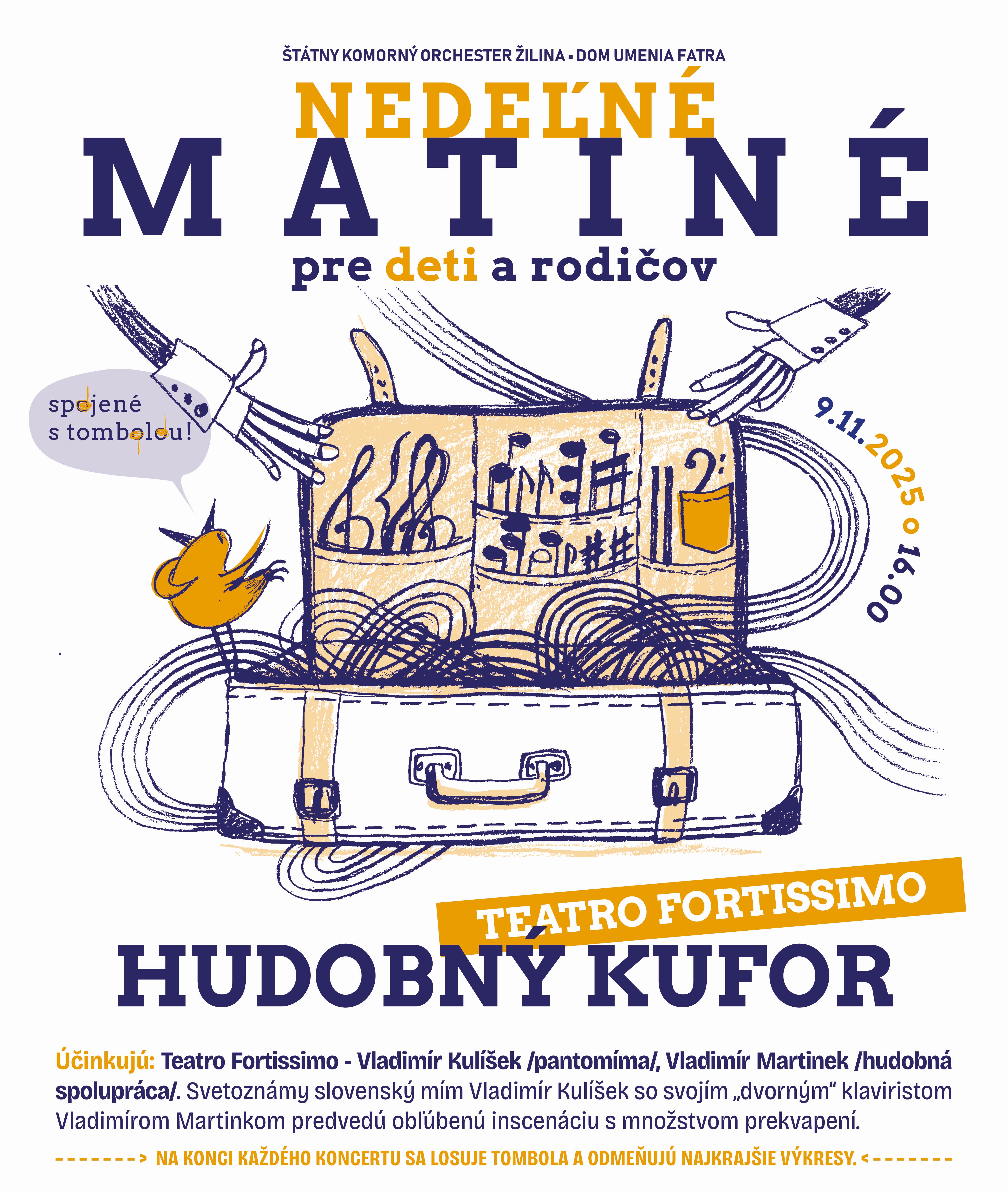 - Program pre deti a rodičov Nedeľné Matiné je na programe s predstavením Hudobný kufor 09.11.2025 o 16:00