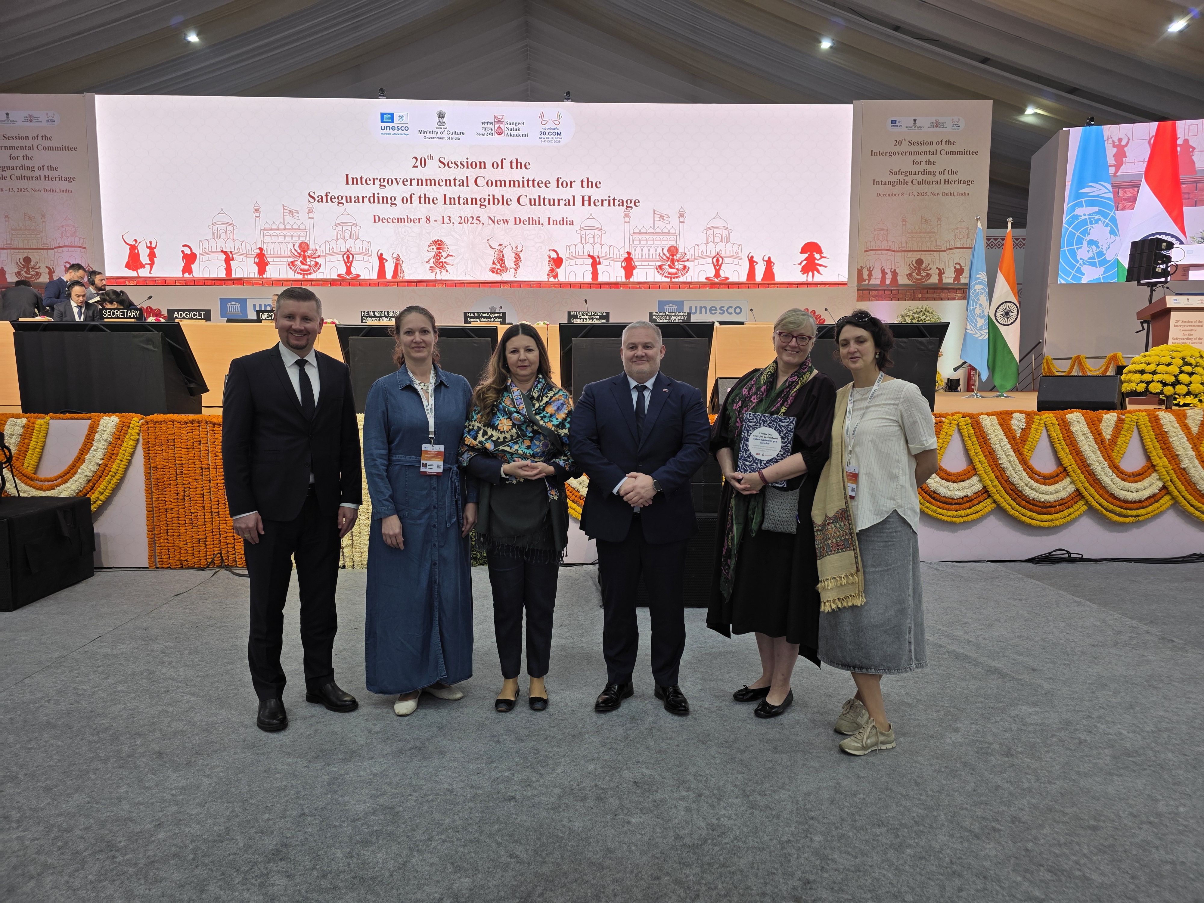 Delegácia Slovenskej republiky sa od 8. do 13. decembra 2025 zúčastnila na 20. zasadnutí Výboru na ochranu nehmotného kultúrneho dedičstva UNESCO v indickom Naí Dillí. Zasadnutiu predsedal veľvyslanec Indie pri UNESCO Vishal V. Sharma. Slovensko zastávalo funkciu podpredsedníckej krajiny spolu s Francúzskom, Barbadosom, Etiópiou a Mauritániou.